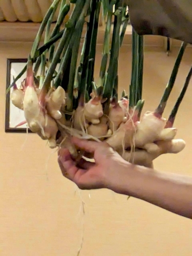せっかく生姜を一株も持ってきていただいたので、天ぷらにして食べてみたり、茎に新芽もついていたので、天ぷらにして貰って食べてみました。